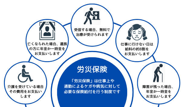 労災保険への加入で様々な特典が受けられます。